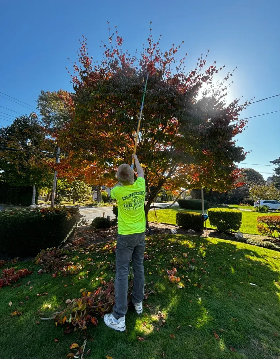 Absolutely. Dunford Tree Service is fully licensed in Massachusetts and carries comprehensive liability and workers' compensation insurance. This protects your property and gives you complete peace of mind. We're happy to provide proof of insurance upon request.